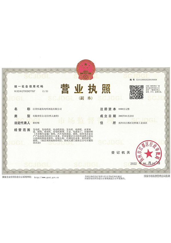恒通發(fā)電機(jī)榮譽(yù)資質(zhì)